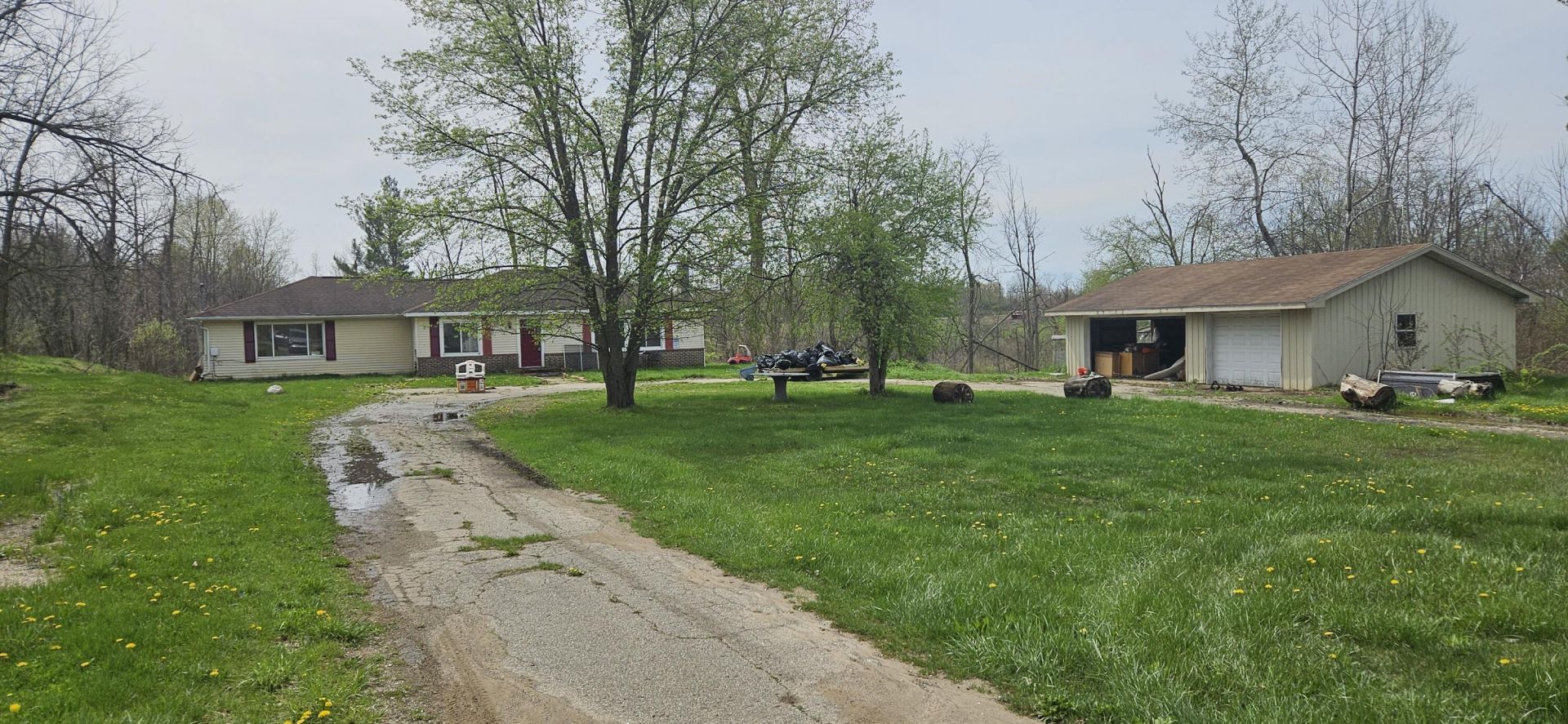 Much potential for this Country Ranch Home in Bloomingdale Township. 4 acres provides a nice setting just east of Town. 20 minute drive to Lake Michigan. Home needs finish work inside, appears to have great bones. There are lenders that might finance this as a construction loan as conventional. Priced to sell quickly and being sold As Is. Square footage information came from a previous listing.